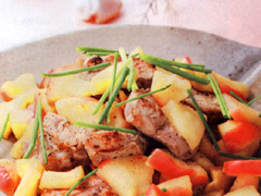 旬のりんごと豚肉を合わせました。シナモンやカレー粉・オールスパイスがアクセントになってた、何ともクセになる美味しさです。りんごは酸味のあるジョナゴールドや紅玉などがオススメです。形や食感が少し残るくらいに仕上げるのがさらに美味しくいただけるコツ。ロイヤルクイーンやサラダマスターレシピなら、フライパンの中央でも端でも同じように均一に火を通すことができるので、ワンパンでサッと作れる時短レシピです。