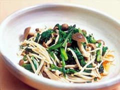 サッと作れるおひたしは、あと一品やお弁当のおかずにもオススメ。今回は旬のほうれん草と春菊を合わせ、さらにそこにきのこをプラスさせて栄養面的にも満点な一品です。特に独特の香りが特徴的な春菊には、αピネンとぺリルアルデヒドという成分が含まれており、αピネンには安眠効果やぺリルアルデヒドには強い抗菌・殺菌作用があり、胃腸の働きを助けてくれます。