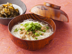冬野菜の代表格、大根を使った風呂吹き大根。しみじみとした淡い味わいに仕上げた大根の上に、柚子の香りや爽やかな濃い味わいの味噌をたっぷりかけていただくのが何とも言えない贅沢感のある一品です。残った味噌ダレは、こんにゃくや焼き豆腐、素揚げした野菜に載せていただくのも美味しいです。