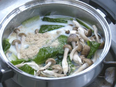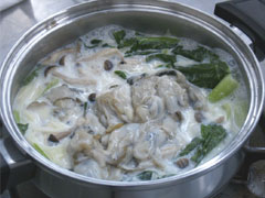 ④蒸気が上がったら塩・コショウで味を調えてカキを加え、煮る。カキに火が通ったら器に盛る。 |